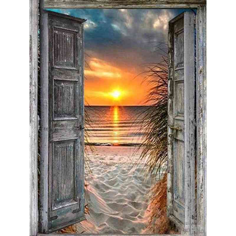 Diamond painting - Zonsondergang achter deur
